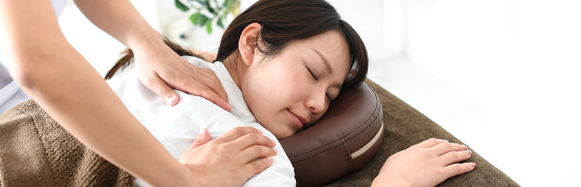 | CLOVERのロングストロークマッサージは、アロマリンパマッサージまたは女性ホルモンバランスマッサージの施術に、たっぷりのオイルを使い、足首から肩までを一気に包み込むように流すロングストロークの手技を加えた、よりリラクゼーションに特化した贅沢なコースです。通常の施術よりもゆったりとしたリズムで、全身を大きく包みこむような感覚が特徴。緊張をほぐし、深いリラックス状態へと導いていきます。 | |